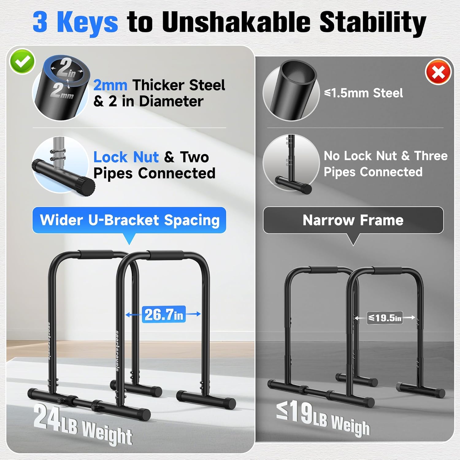 StackCore Adjustable Dip Bar Station, Heavy Duty Parallette & Parallel Bars, 400LBS Stable Dip Stands for Hom